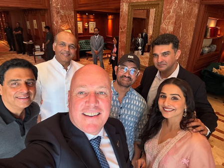 In the photo, Aamir Khan, Vidya Balan, Siddharth Roy Kapur, Ronnie Screwvala, and Ashutosh Gowariker can be seen posing while Christopher Luxon takes a group selfie.