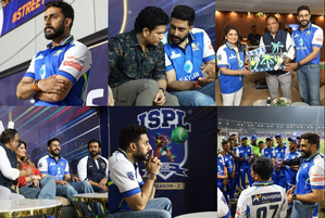 Abhishek Bachchan took to his IG, and dropped a couple of BTS pictures from the match. In one of the stills, he can be seen in the stands, while in the other he is in the middle of an intense conversation with Sachin Tendulkar. In the following photos, the ‘Paa’ actor is posing with his team post the win. Elated by Majhi Mumbai’s latest win, Abhishek Bachchan wrote in the caption, “Celebrating the sport, the win and the boys at @majhimumbai_ispl.”