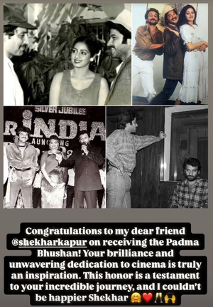 Anil Kapoor further wrote a congratulatory note to go with the throwback pictures, “Congratulations to my dear friend @shekharkapur on receiving the Padma Bhushan! Your brilliance and unwavering dedication to cinema is truly an inspiration. This honor is a testament to your incredible journey, and I couldn’t be happier Shekhar”, along with a hug, red heart, clinging glasses, and high-five emojis.